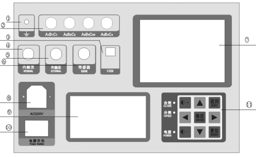 | ⑤ | 外觸發(fā)插座 | 外觸發(fā)方式時(shí),直接并接到分、合線圈兩端,取線圈上電信號作為同步信號。 |