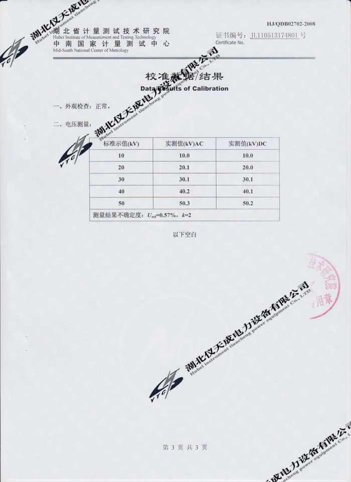 轉(zhuǎn)載:"YTC8106-50交直流分壓器的資質(zhì)證書" 請注明來源于儀天成電力。 更多技術(shù)問題請致電儀天成電力客戶服務:027-87876585,技術(shù)部專線:027-87876585,在線客服:719388481